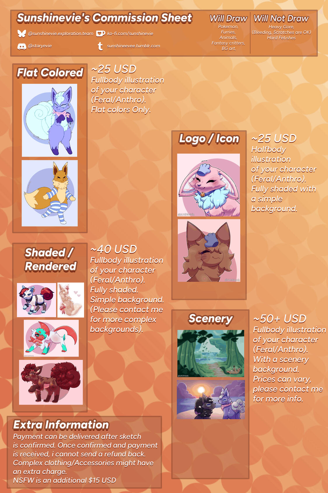 - to pay, please either donate the amount agreed upon on ko-fi or buy it in the commissions tab (i would prefer the former because theres less fees!)
